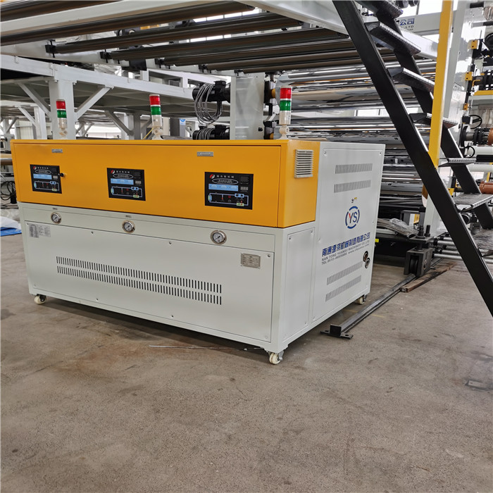 源溯機械公司自主研制開發的薄膜生產線,具有原料輸送、稱重、攪拌、喂料集中控制功能,以及高度定制化
